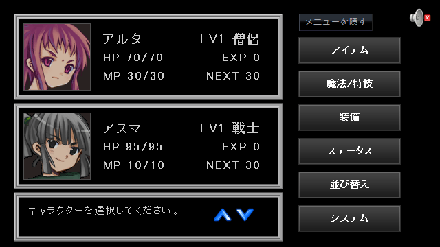 ただし、すべてを備えたRPGをシステムから一人で作るのは過酷すぎるので、RPGの要素のうち、なくても何とかなる要素があるなら省いてしまおうと考えました。